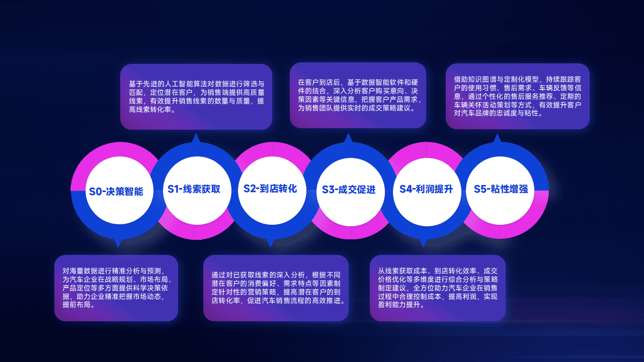 通过拓宽潜在客户来源、、、优化线索分配并提高到店转化率,,,,以增强销售效率。。同时,,,,利用线索数据不断优化分析模型,,,有效提升转化率,,,,扩大营销影响力。。。